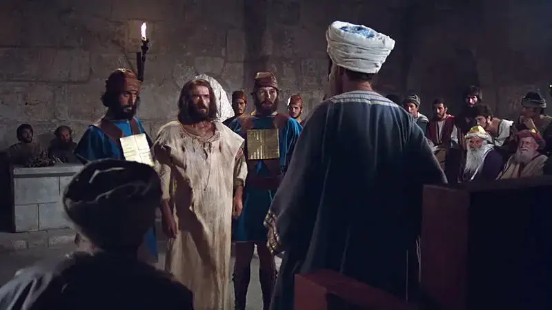 46 ኢየሱስ ላይ አፌዙበት እናም ለጥያቄ ቀረበ